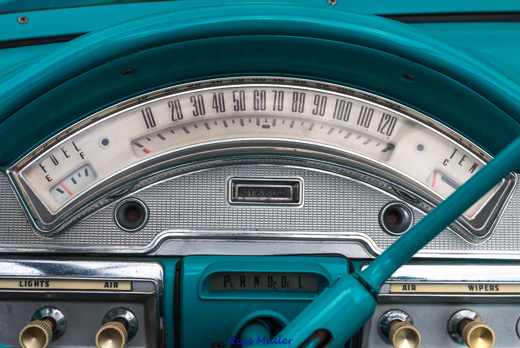 brakes, and a Town and Country AM radio. The optional cigarette lighter was not ordered with this car. At some point, an aftermarket air conditioning system was added. I photographed this car when it was part of the South 40 Collection in Florida.