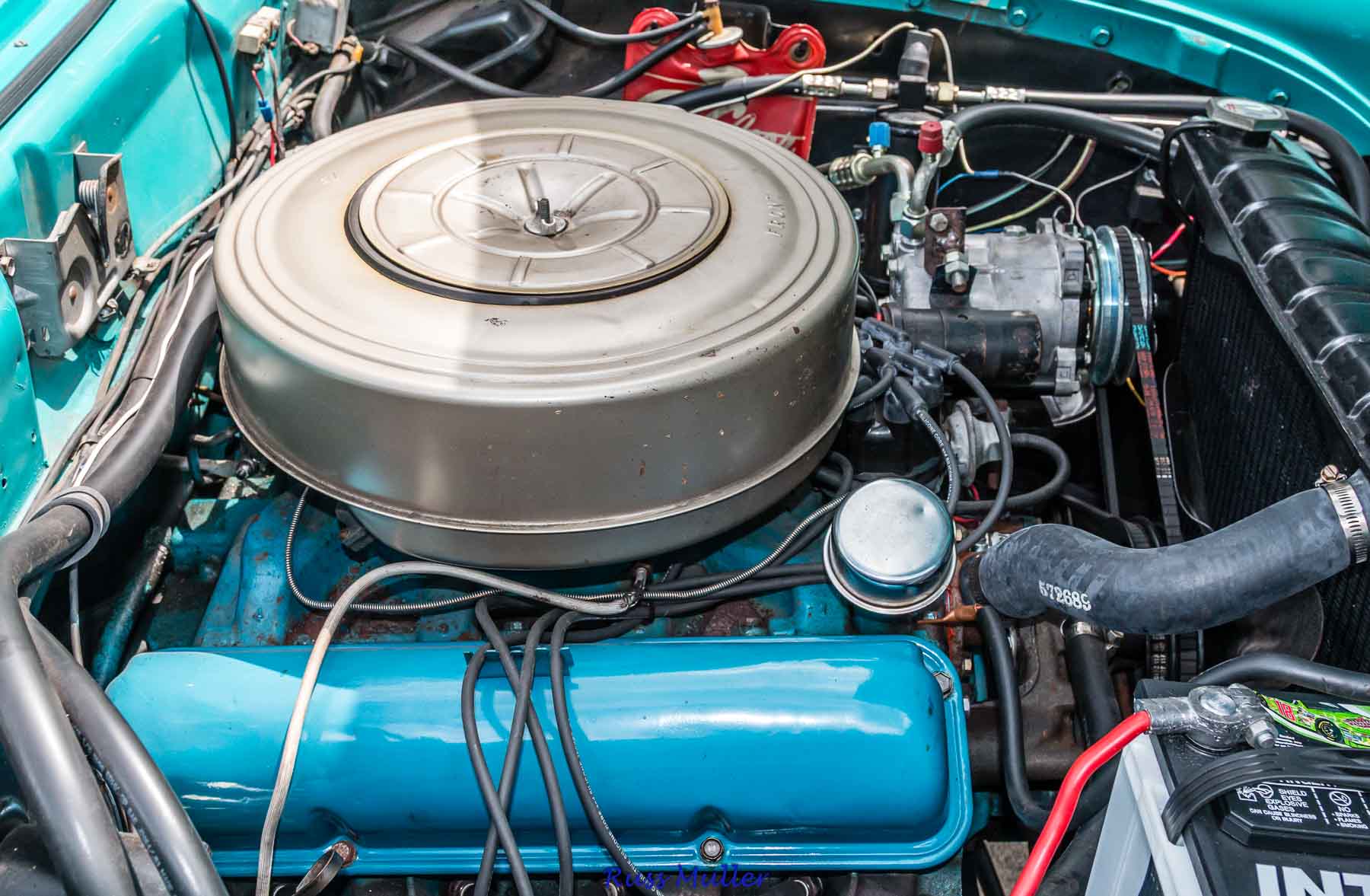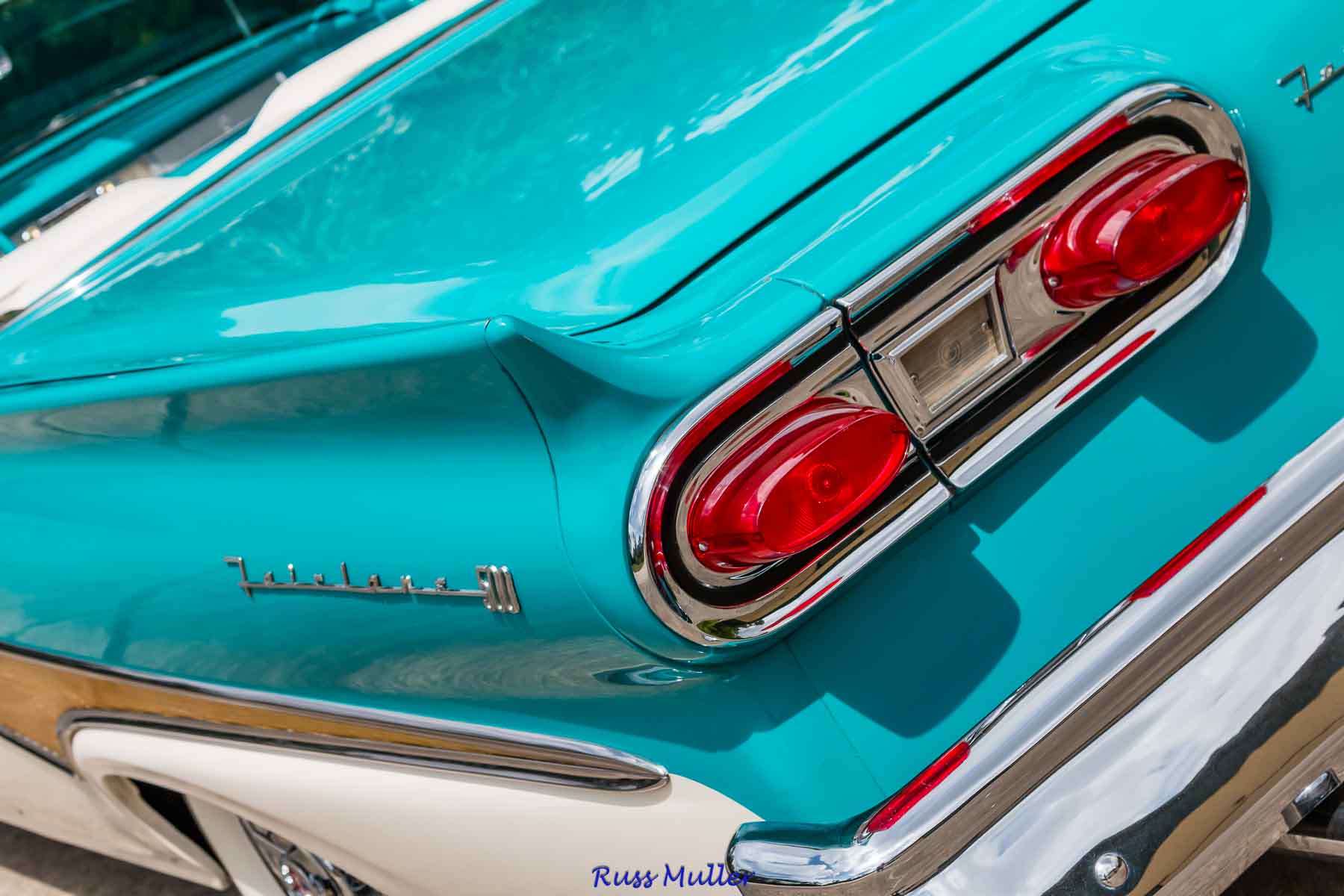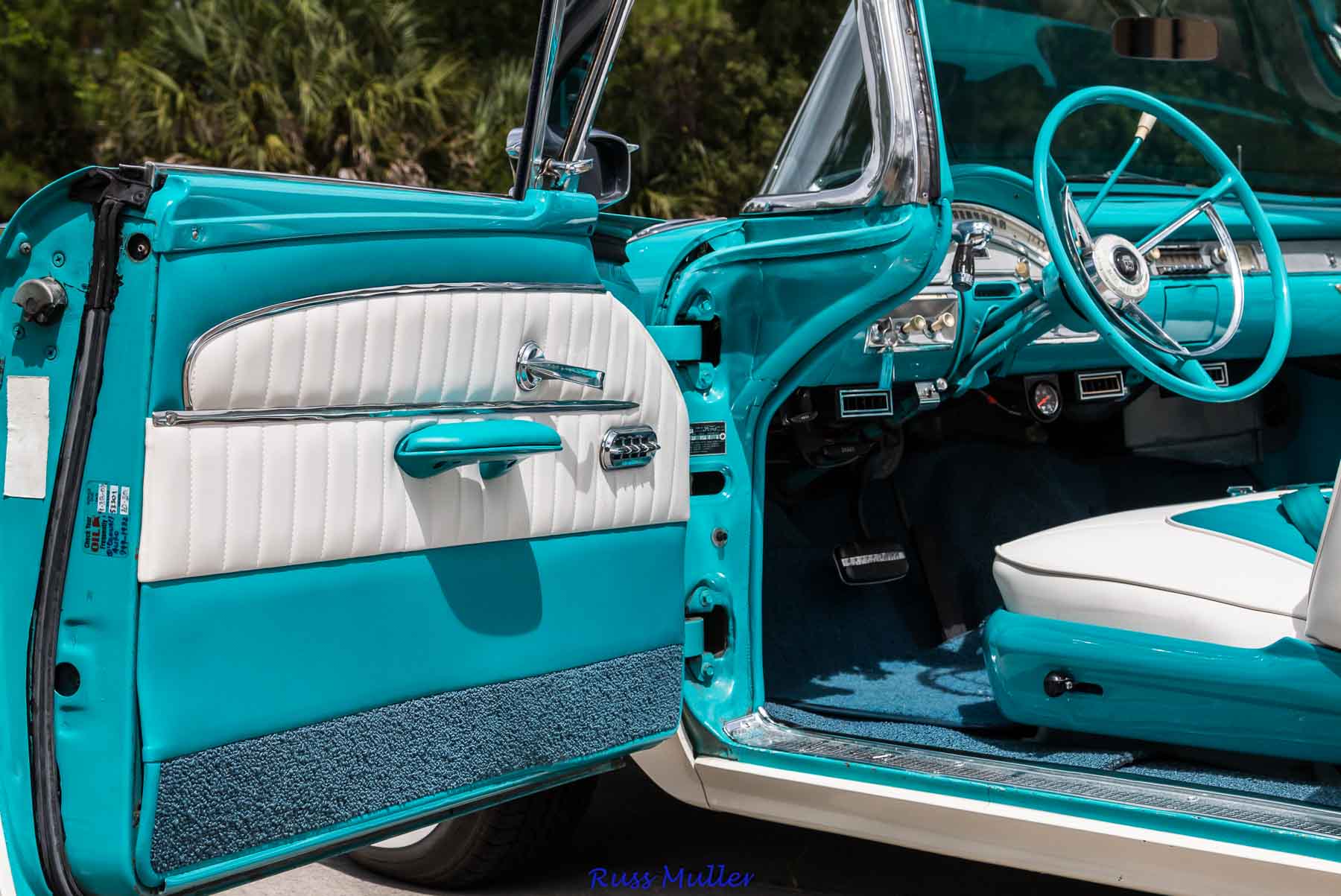 This beautiful example is one of 14,713 produced for 1958. The two tone colors are Azure Blue and Colonial White. It features a 300 horsepower 352 cubic inch V-8 and Cruise-O-Matic automatic transmission. Other features include power steering, power