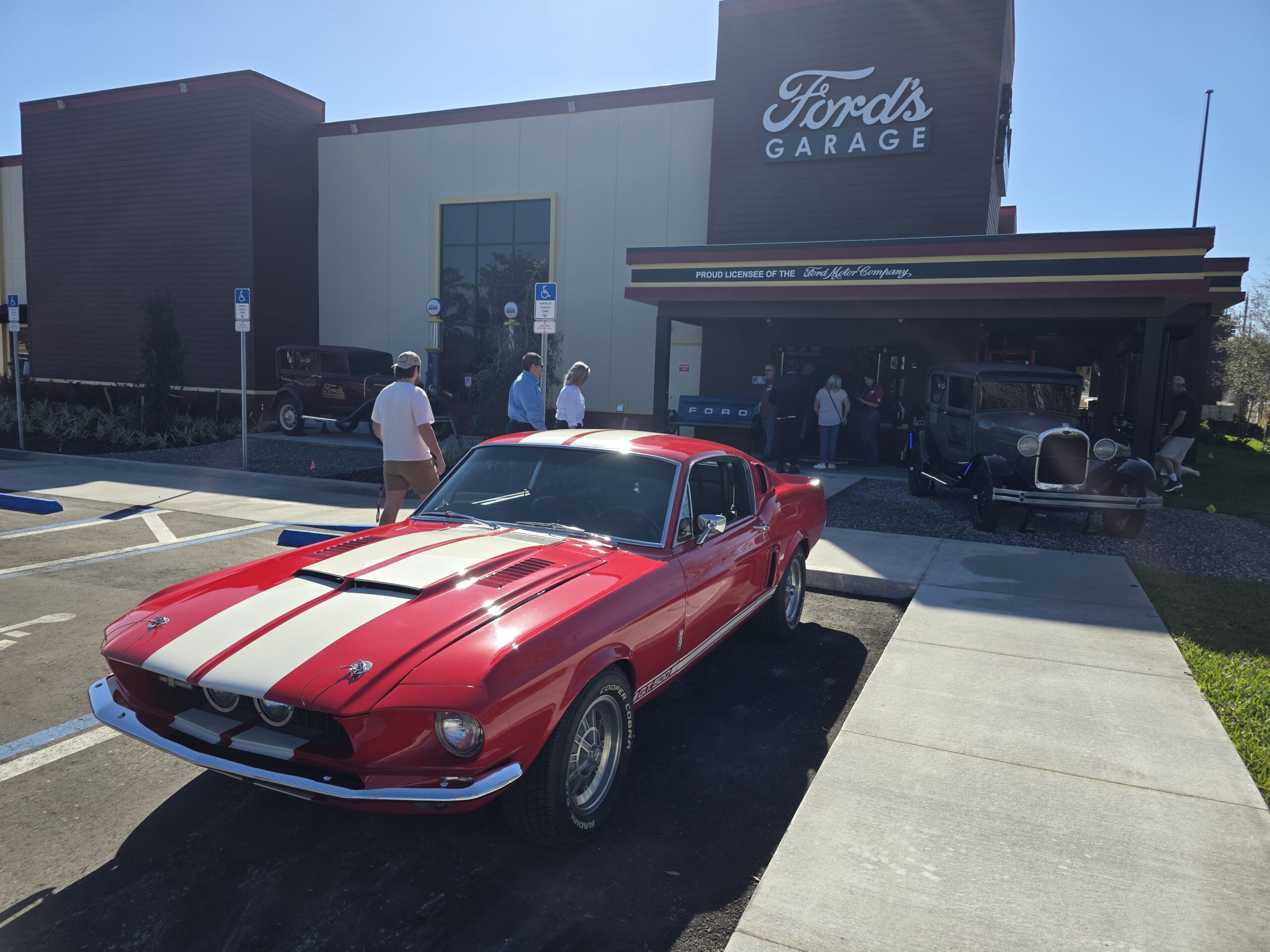 I arrived right before the ribbon cutting with various Sanford officials and district managers, plus the incoming Sanford staff.  They immediately went to work openingFord's Garage the restaurant to the public.  All smiles and welcomes, the staff kept our drinks filled and made sure the food was spot on.  The manager was kind enough to reserve the first parking space next to the entrance for my 1967 Shelby.  It was a big hit with the patrons.  Don't pass up an opportunity to visit a Ford's Garage and take in all the car features within the restaurant.  Aside from the burgers and sandwiches, they atmosphere is a perfect place for all classic car enthusiasts.