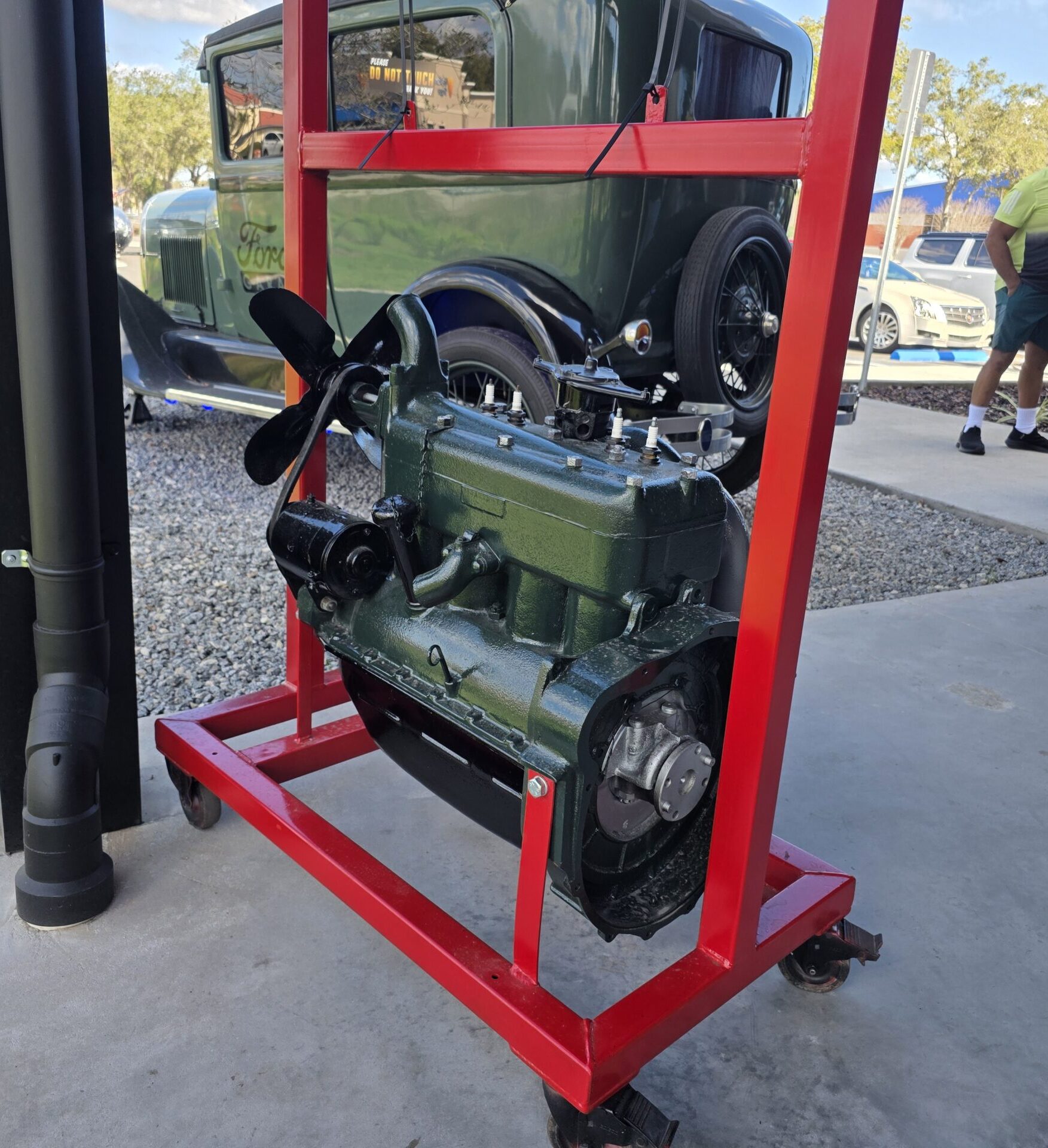 If you have never been to one, and you like old cars, this is a MUST STOP.  Every little detail pays homage to the vintage days of the the Model A & T.  The doors have gas pump handles, the bathroom sinks are tires, the napkins are blue shop rags rolled in a hose clamp, and there is a classic Model T hanging above the bar (which has a strip of ice to keep your drink cold).  Every half hour the Model T honks the horn and releases smoke out the exhaust.  A very fun feature. Early engines are scattered throughout the restaurant along with old photos and memorabilia.   Outside are big vintage-style gas pumps and an old Ford or two.