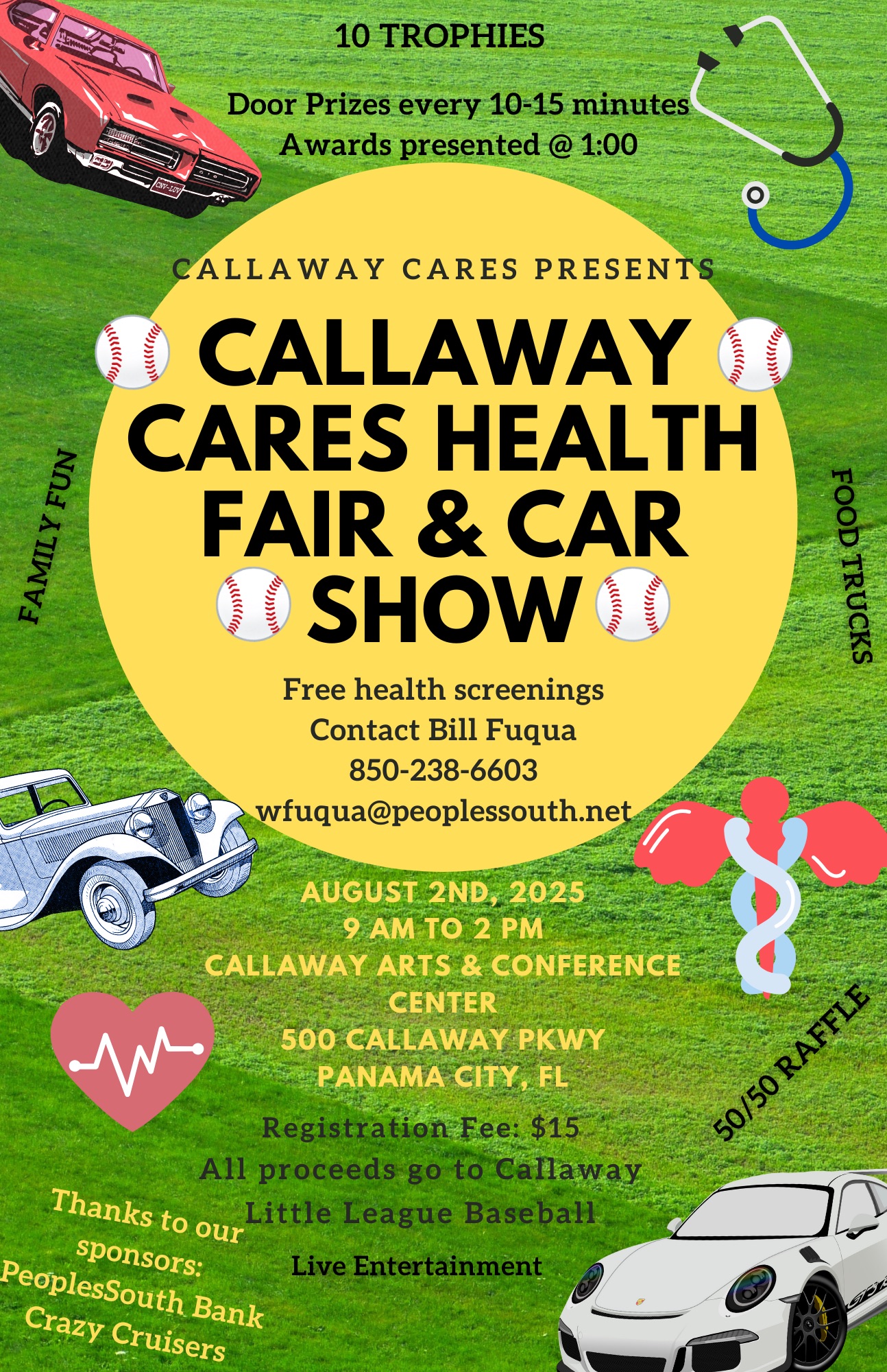 All proceeds will go to the Callaway Little League Baseball. Food trucks, 50/50, live entertainment, and door prize drawings every 10-15 minutes. Awards presented at 1pm.