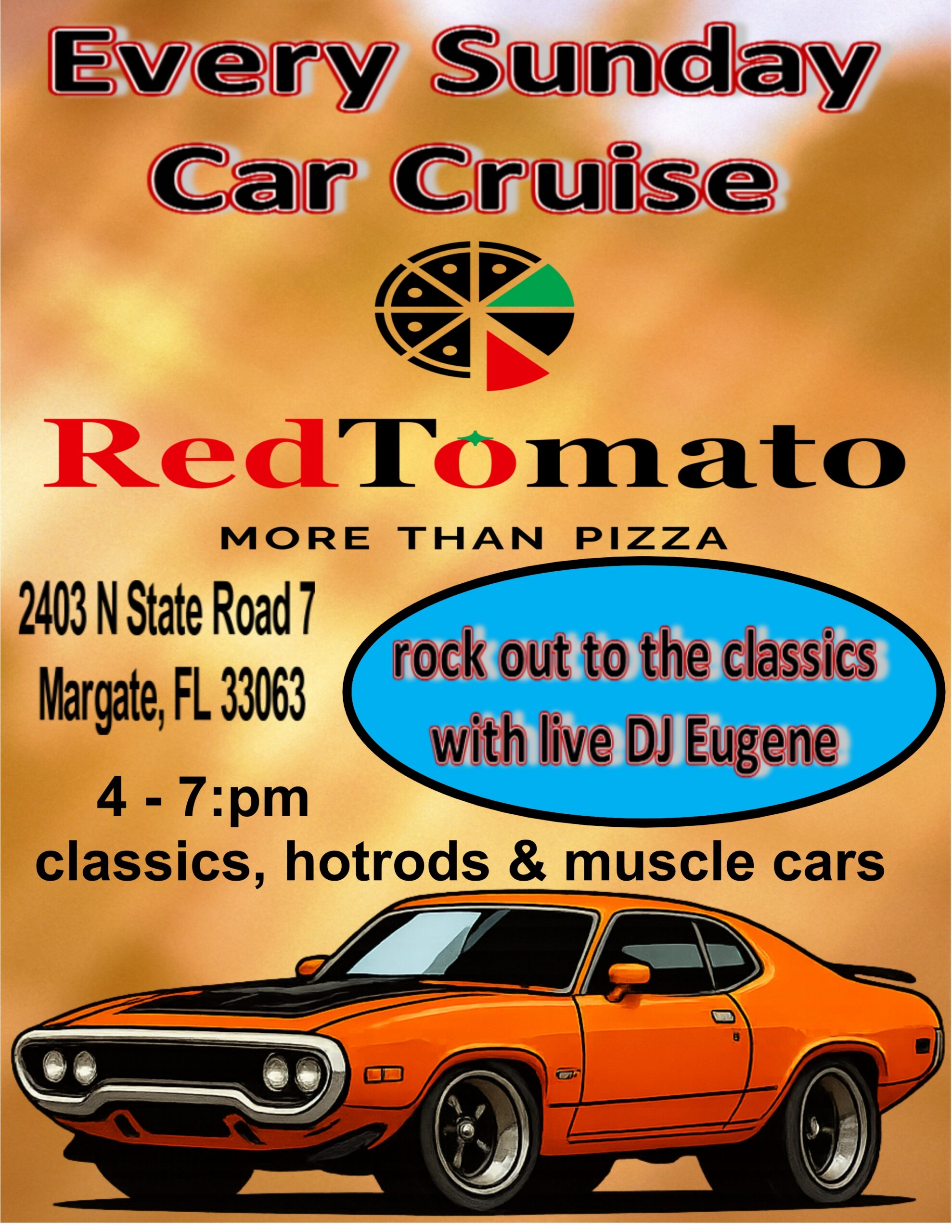Every Sunday. Biggest car cruise in the area and private parking lot with DJ Eugene spinning the classic tunes. Open to all classics, hotrods and muscle cars.