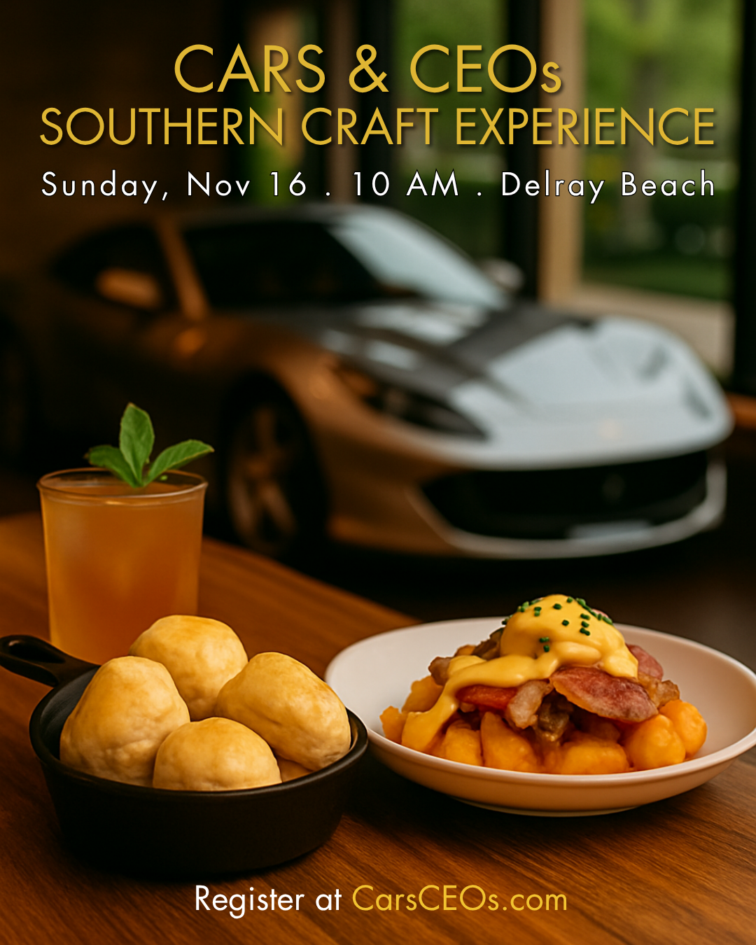 A morning of Southern hospitality and culinary craftsmanship in the heart of Delray Beach. Hosted at Batch New Southern Kitchen & Tap, this private chef guided brunch experience blends refined comfort, scratch made flavor, and the signature connection that defines the Cars & CEOs community.