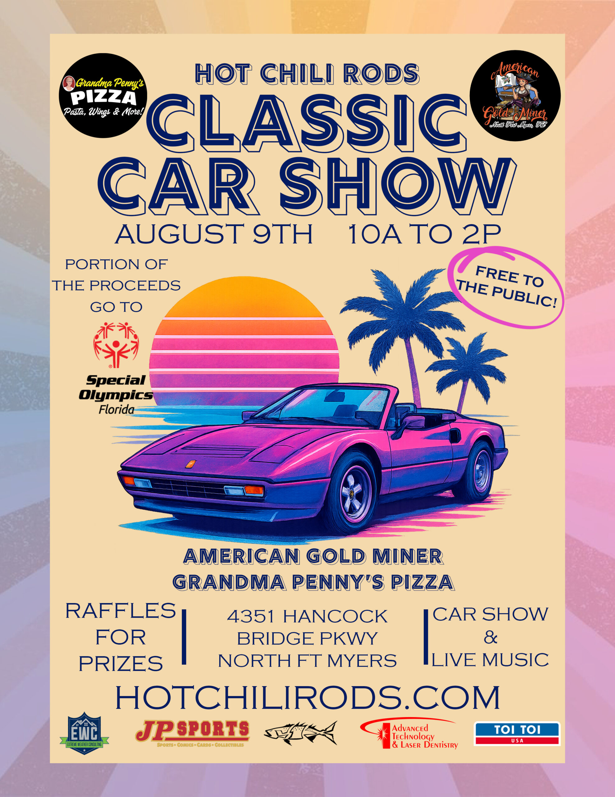 Presented by Hot Chili Rods. A portion of the proceeds will be donated to Special Olympics Florida. Raffles, DJ music, vendors, and great food. Spectators are free.