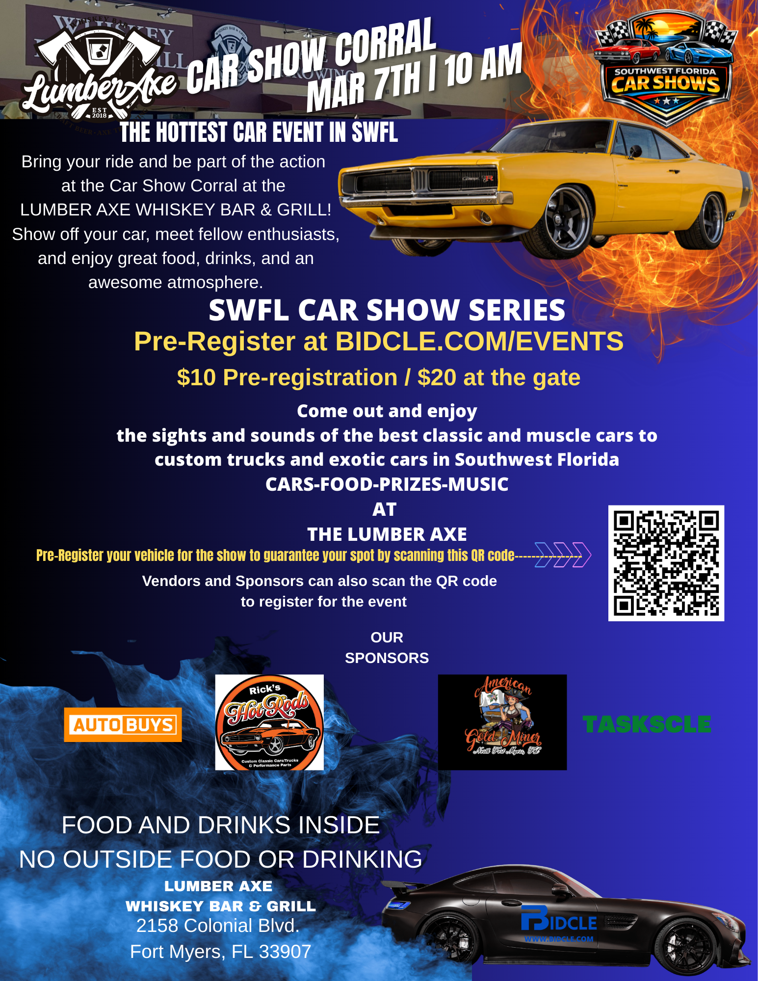 Bring Your Ride & Be Part of the Action! Show off your build, connect with fellow enthusiasts, and enjoy incredible food, drinks, and atmosphere. Experience the sights and sounds of southwest Florida’s car culture — from classics and muscle cars to lifted trucks, customs, and exotic builds. Lumber Axe is known for hosting massive events like truck pulls and bike nights all year long — and this will be their SECOND car show of 2026. If you missed the first one, don’t make that mistake again. 300+ cars and trucks expected, great food & drinks, high-energy atmosphere. Bring your crew. Let’s pack the lot. Spectators are free.