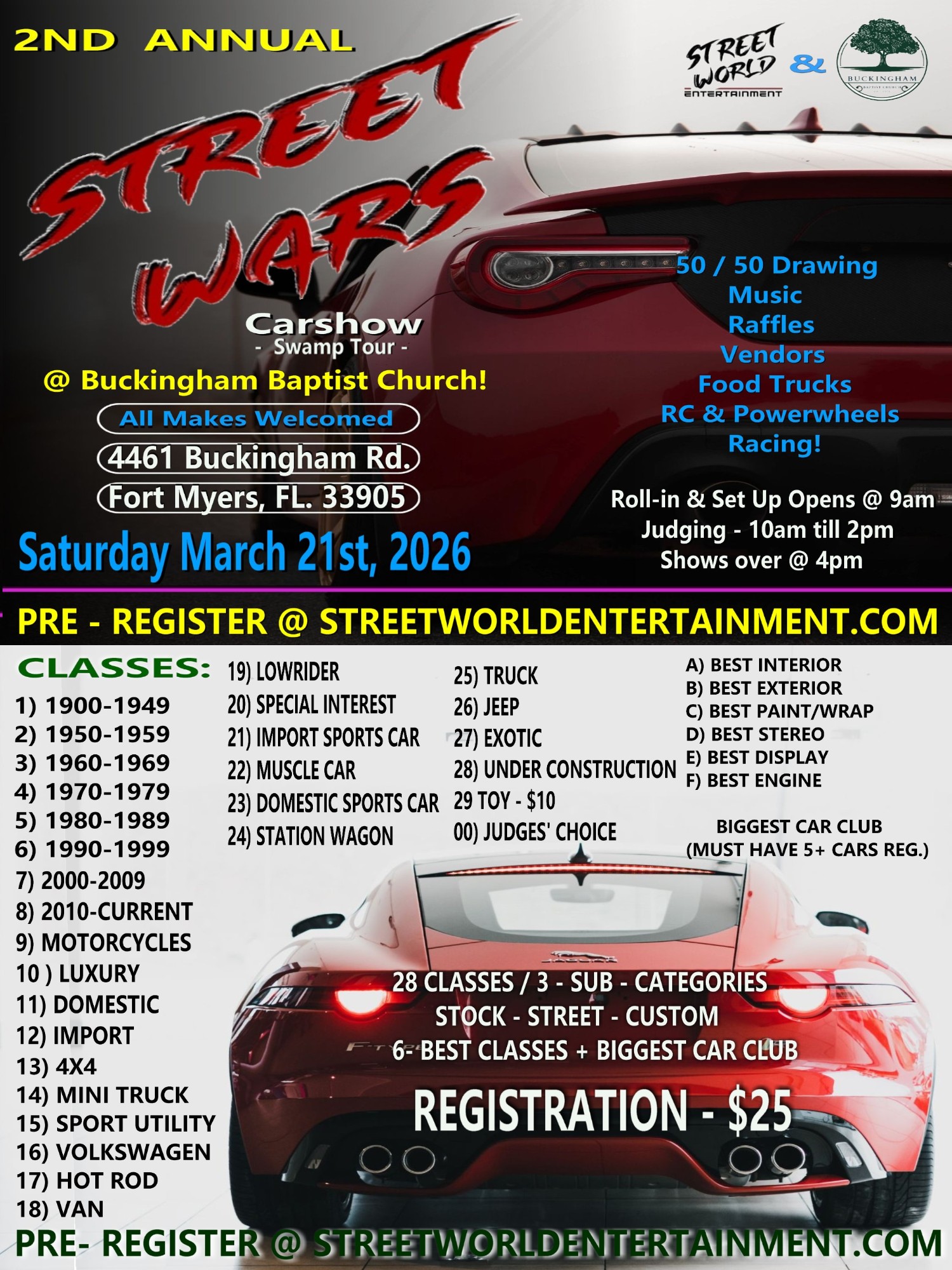 Proceeds will benefit the Buckingham Baptist Church. Here's your chance to rack up even more points towards the season finale. There will be 11 shows with the 12th being the season finale show. The top three, based on points, in each class will be invited to go up against each other at the season finale for best of the year.