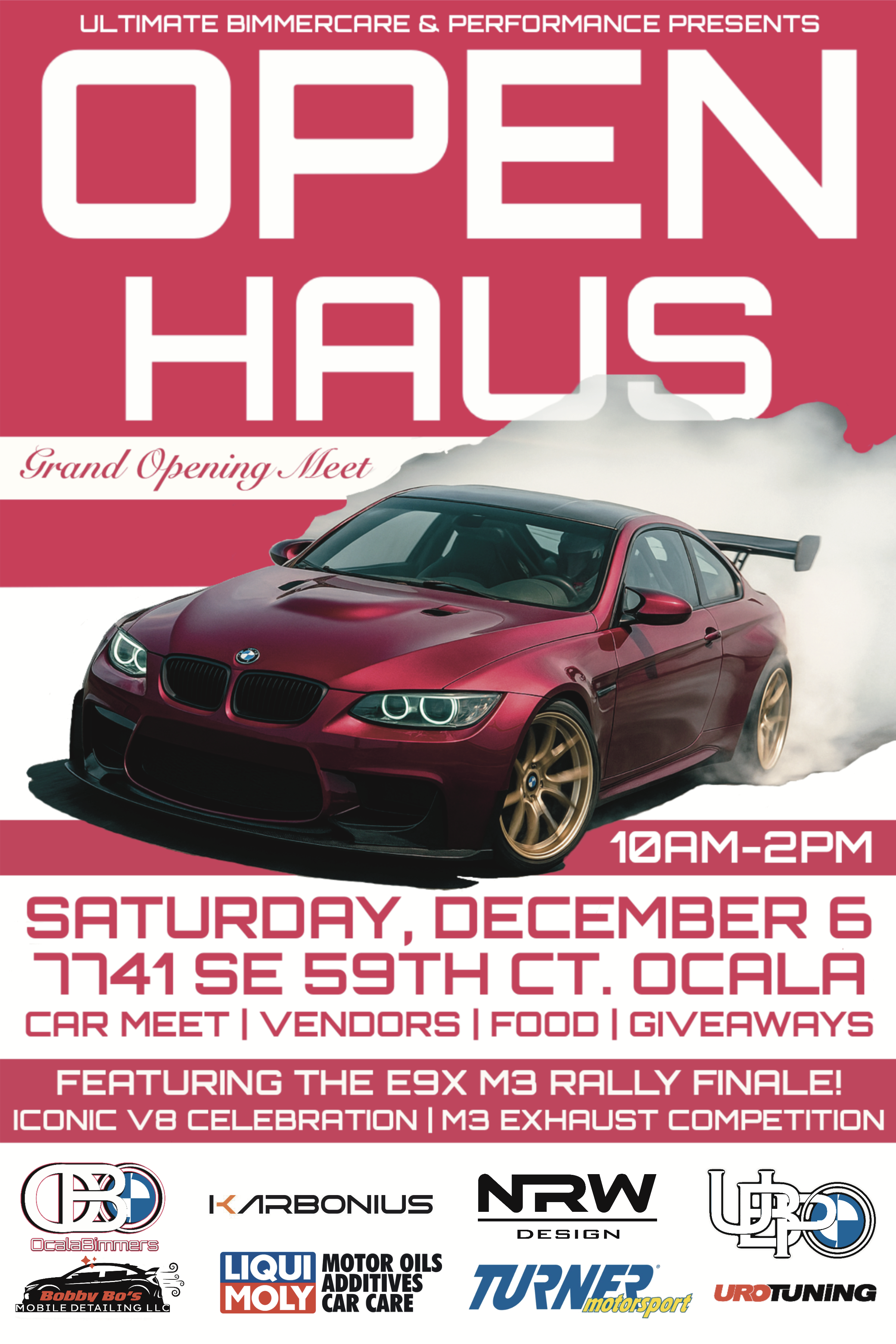 Announcing “OPEN HAUS” – Our Grand Opening Meet. We’re opening the doors at Ultimate Bimmercare & Performance for a day of cars, food, and good vibes. Save the date and come chill with us. Expect some truly epic BMW builds, vendors, giveaways — and a special goodie bag for the first 50 BMWs to arrive. Whether you daily your BMW or track it on the weekends, we invite you to come hang out, tour the shop, and celebrate your car with fellow enthusiasts.